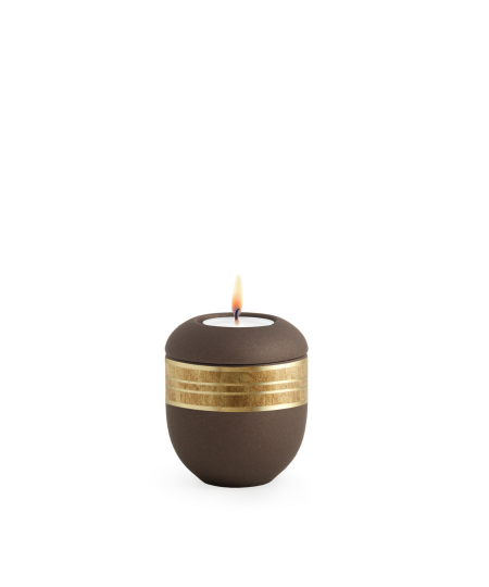 Edition Cleo, Samtton - Gedenklicht, Handbemaltes Dekor altgold, Keramik